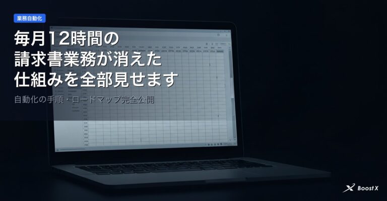 GASやAPI連携で業務を楽にしたい、でも「どの業務から自動化すべきか」の判断が難しい——ここで手が止まってしまうケースがあります。先にツールを触るより、自動化する順番を整理しておくほうが、結果的に早く楽になります。BoostXの業務自動化サービスは、この順番づくりから、設計、運用の定着まで並走する内容です。どこから始めるべきか、まずは無料相談でご相談ください。