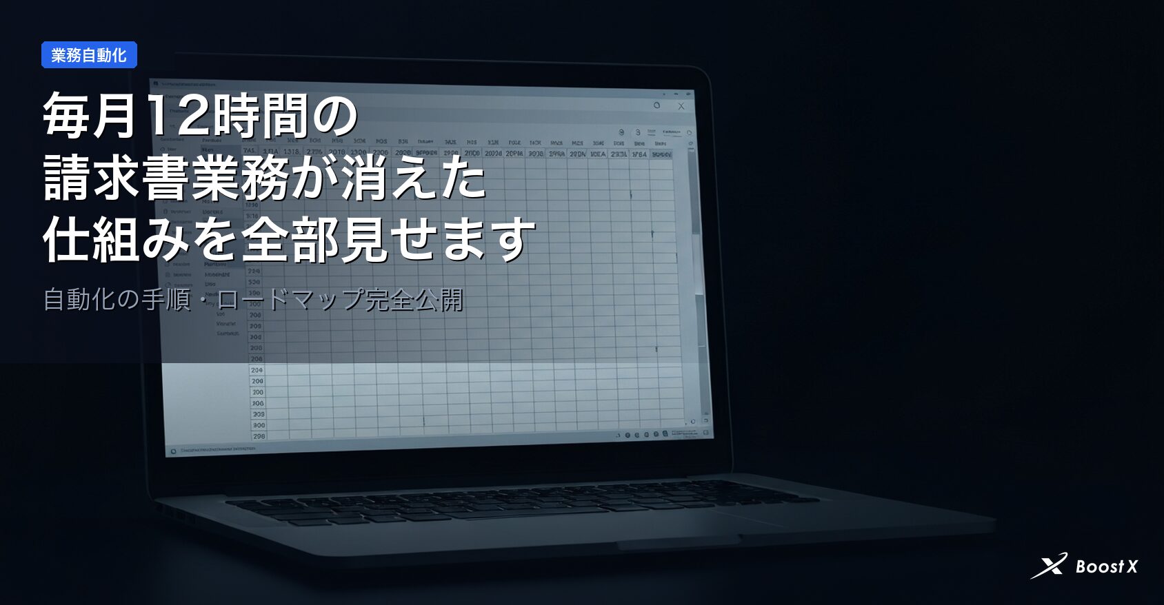 毎月の月末になると憂鬱になっていました。請求書を作って、内容を確認して、PDFに変換して、取引先ごとにメールで送って、入金を確認して——この繰り返しが、確認したら月12時間以上かかっていたんです。「もっと大事な仕事に時間を使いたい」と思いながら、なかなか手を付けられずにいた。でも、2026年4月に仕組みを整えてから、その12時間がほぼゼロになりました。この記事では、実際に何をどの順番でやったか、失敗も含めて全部書きます。